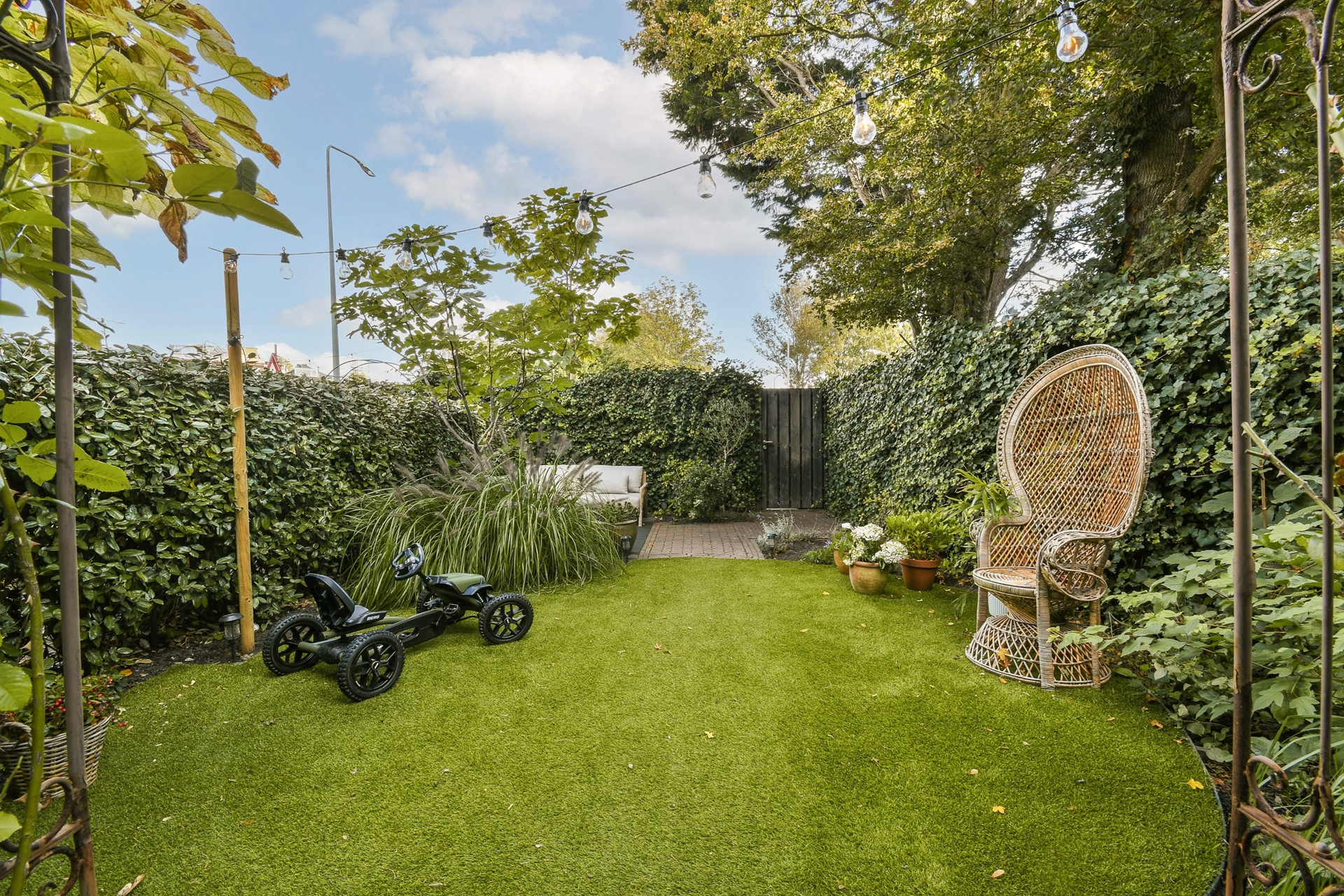 From the kitchen, you can access the beautifully landscaped garden through the back door, which also has its own exit.