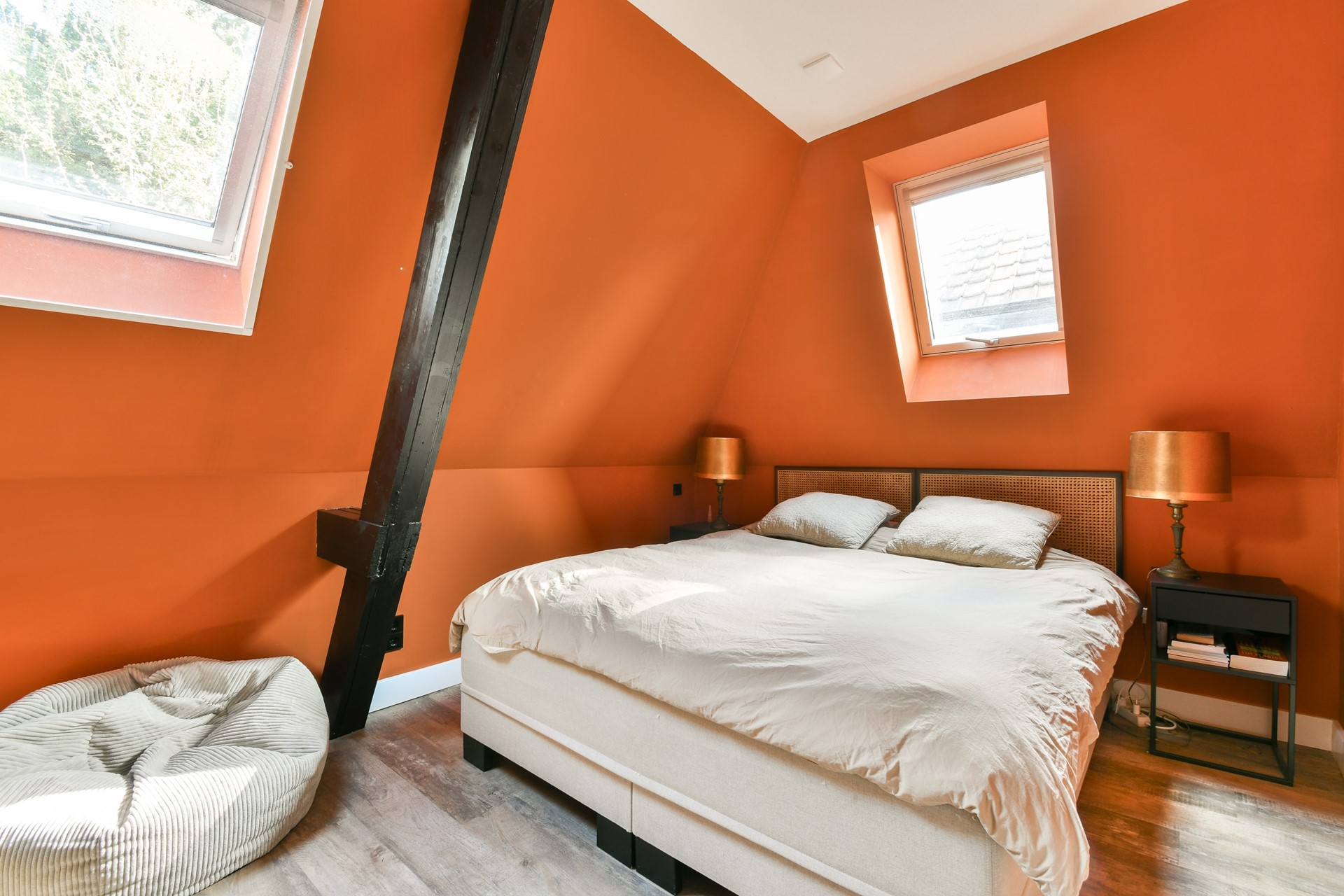 On the garden side, you will find the master bedroom.