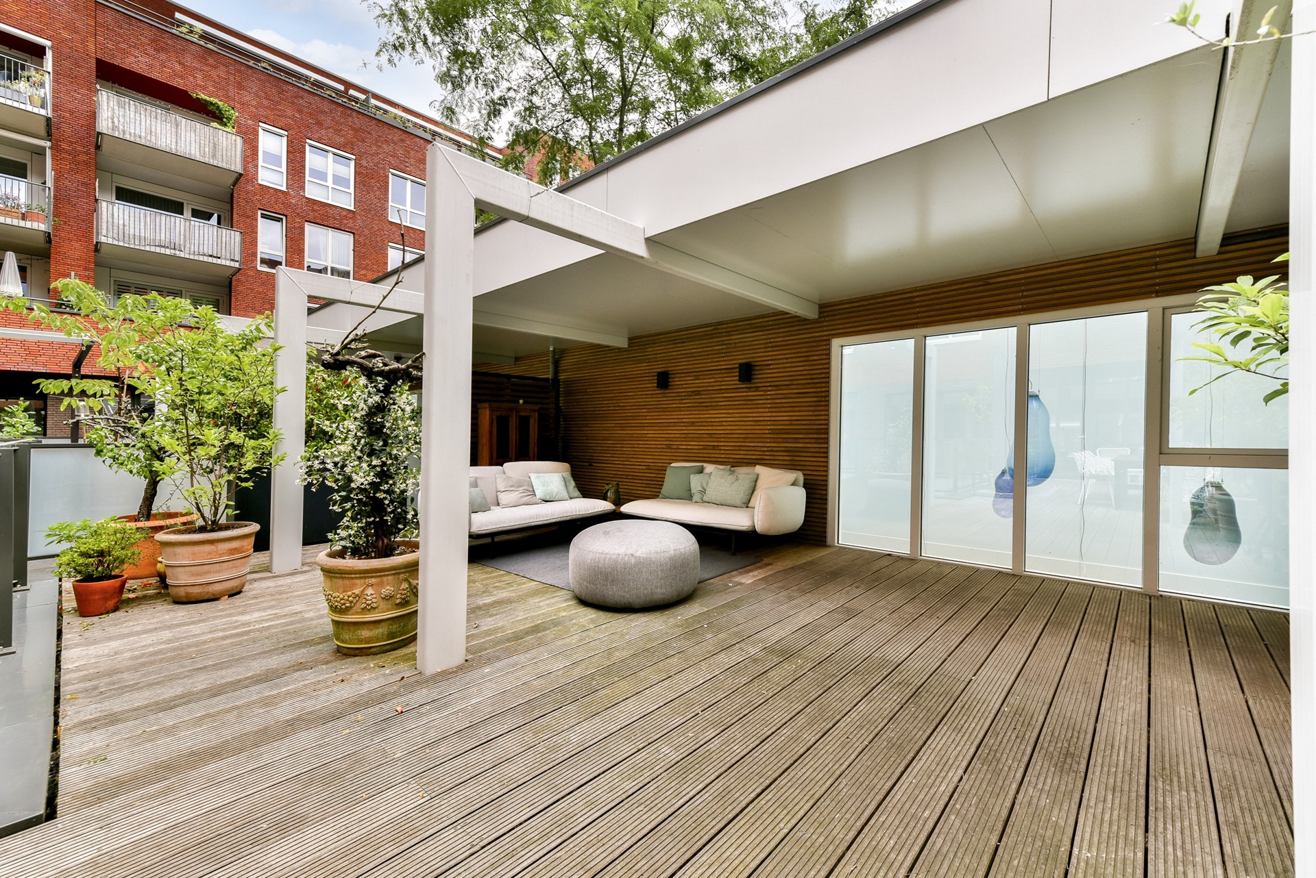 Aan deze ruimte is het dakterras verbonden van maar liefst 65m2, met een overkapping waar je heerlijk beschut het gehele jaar gebruik van kan maken.