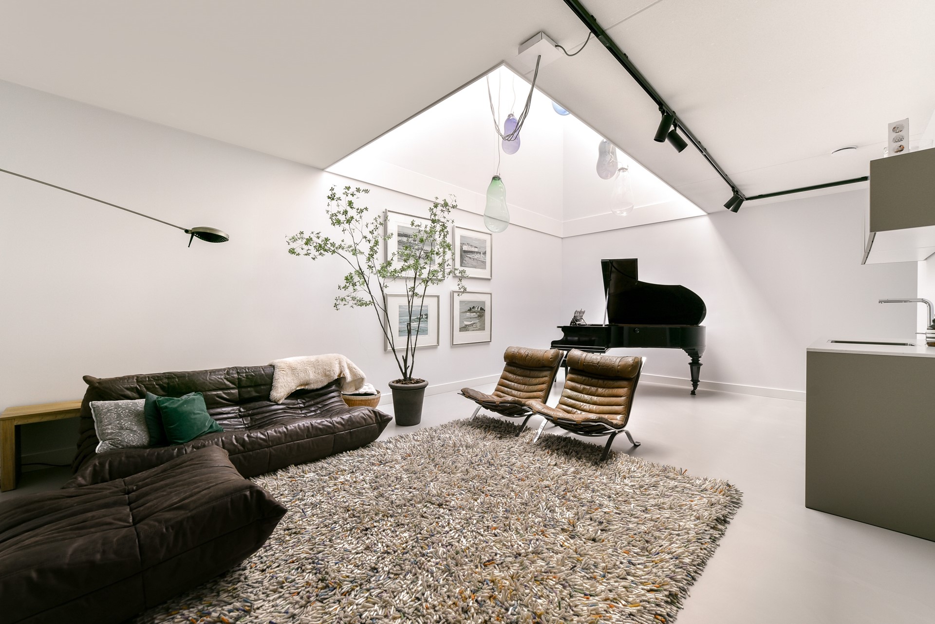 Via de werkkamer bereik je de laatste ruimte welke in gebruik genomen kan worden als slaapkamer of extra woonkamer. Deze ruimte is thans in gebruik als woonkamer en is voorzien met een kitchenette. Ook kan deze ruimte perfect gebruikt worden als atelier vanwege de prachtige lichtinval mede doordat de plafondhoogte ruim 7 meter hoog is!