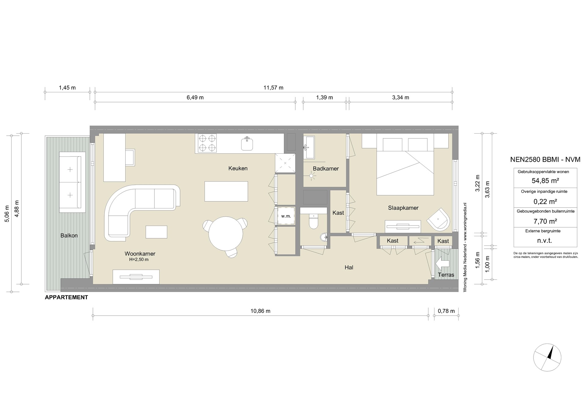 - Gebruiksoppervlakte: 54,85 m² (balkon 7,70 m² ) (NEN2580 meetrapport beschikbaar)