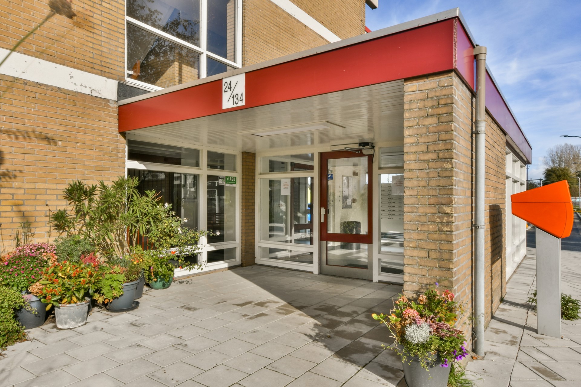 Via de gezamenlijke entree neem je de lift of trap naar de vierde verdieping, waar je het appartement betreedt.